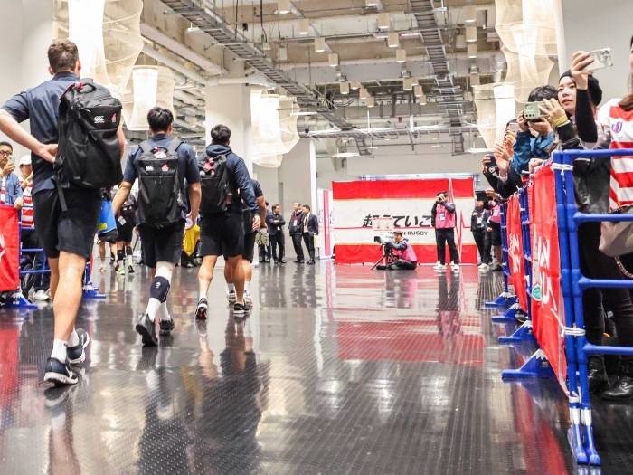 オーストラリア代表“ワラビーズ”との一戦。専用ラウンジでは、両国のファンが自然に言葉を交わし、試合後には“ノーサイド”の精神のもと交流が広がる場面も見られました。上質な空間での食事やドリンク、ピッチレベルでの特別体験とともに、観戦を超えた一日をご提供しました。